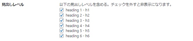 この項目で、目次の表示対象となるヘッダタグを指定することができます。